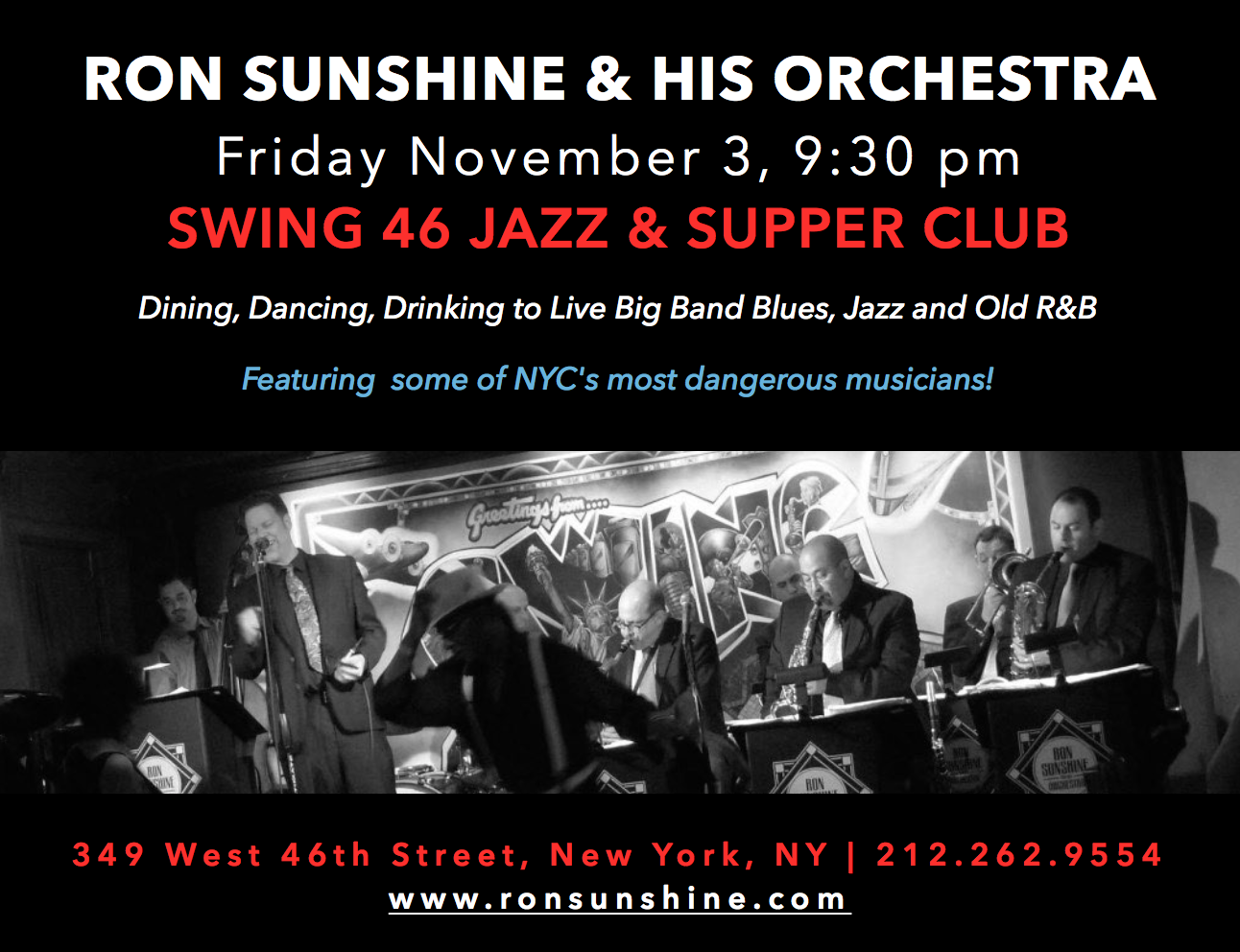 Elegant Midtown Entertainment at its finest. Join Ron and his 9-piece band for an unforgettable evening of dining, dancing and drinking in one of the last true supper clubs in New York City, right in the heart of Restaurant Row in Manhattan. A free beginner dance lesson in included in the price of admission. No partner necessary! Prepare yourself for a night of unforgettable big band swing, rocking rhythm & blues, and jazz standards performed by a group of New York’s finest and most distinguished musicians.